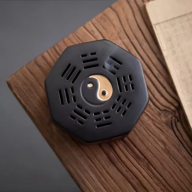 Transform your home or meditation area with the captivating beauty and soothing aromas of this Black Glazed Eight Trigrams Sandalwood Incense Holder. Elevate your daily rituals and invite harmony with this exquisite piece. Add it to your collection now and experience the peaceful ambiance it creates.