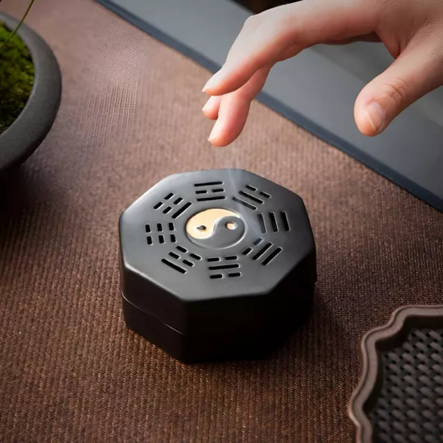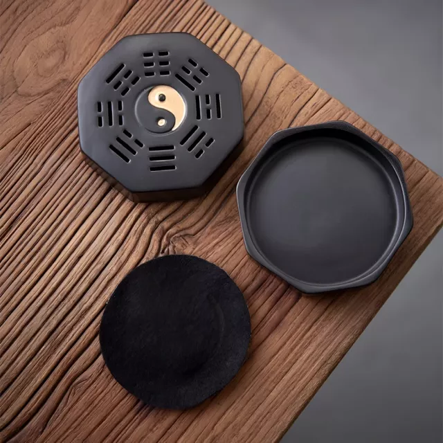 Discover the perfect blend of tradition and tranquility with this Black Glazed Eight Trigrams Sandalwood Coil Incense Holder. Crafted from high-quality ceramic, this sleek black incense burner is designed not only to enhance your home decor but also to elevate your senses. Its elegant Eight Trigrams design adds a touch of cultural mystique, making it a standout piece in any room.