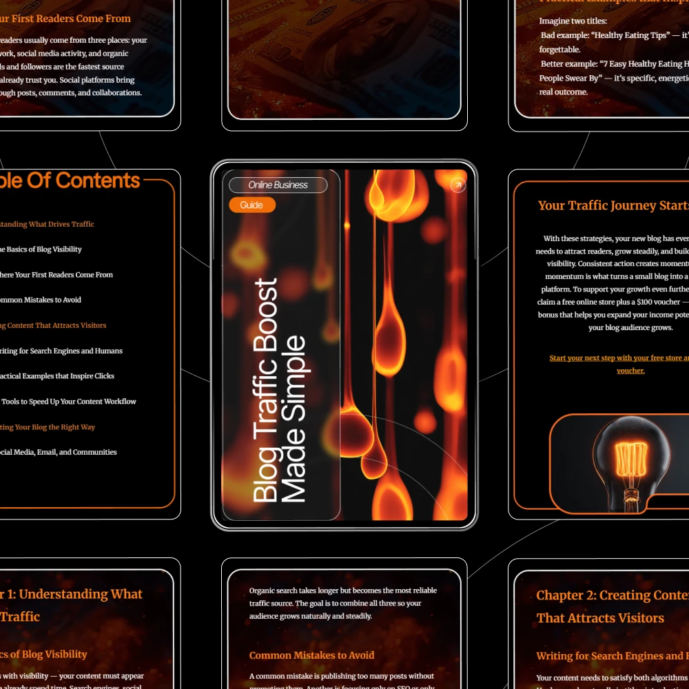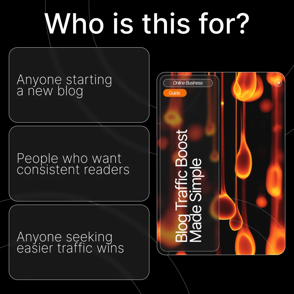 Blog Traffic Boost Made Simple is your clear, clutter-free digital guide designed to help new bloggers understand exactly how to get traffic to a new blog without overwhelm. Whether you’re just starting out or you’ve been writing with little to show for it, this guide walks you through the essential principles, smart shortcuts, and practical examples that turn quiet blogs into growing, engaged audiences. Written in simple, human language, it removes the guesswork and gives you a roadmap you can use today.