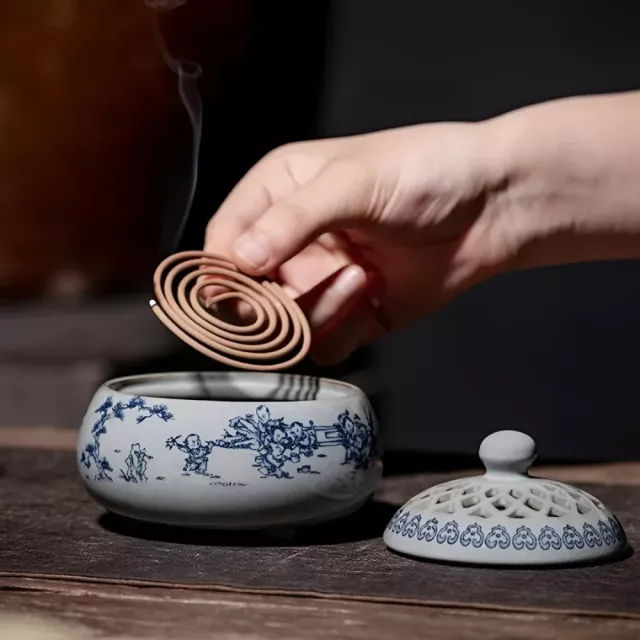 Crafted from high-quality ceramic, this fragrance censer is built to last. It boasts strong frost resistance and durability, ensuring that it remains a beautiful part of your space for years to come. The smooth, glossy finish highlights the intricate blue and white mountain design, giving it an artistic and timeless appeal. This burner is designed specifically to hold coil incense safely and efficiently, releasing soothing aromas that calm your mind and refresh your surroundings.