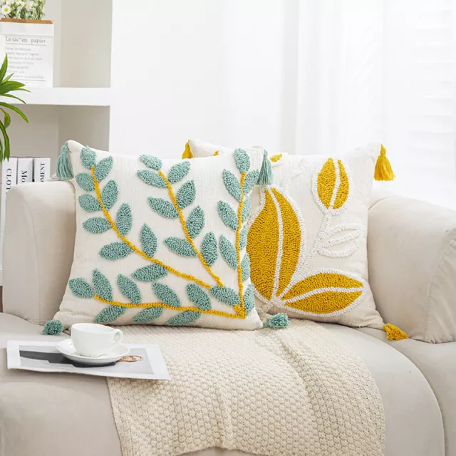 Add a touch of effortless style to your home with this stunning bohemian tufted cushion cover. Featuring a beautifully embroidered leaf pattern in shades of blue and yellow, this cover combines chic design with cozy comfort. The tufted chenille detailing and soft tassels make it an eye-catching accent piece, perfect for elevating any sofa, chair, or bed. Its vibrant yet soothing design brings warmth and personality to your space, whether you’re going for a casual boho look or a touch of luxury.
