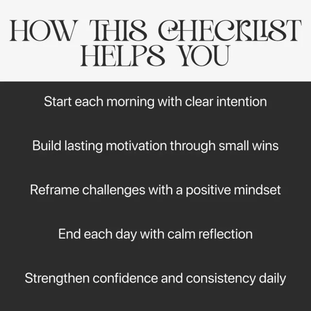 This checklist is perfect for anyone looking for practical motivation and mindset tips—students, entrepreneurs, parents, or anyone wanting to start their day with purpose and end it with peace. It’s designed for those ready to shift from “I should” to “I can,” one positive habit at a time.