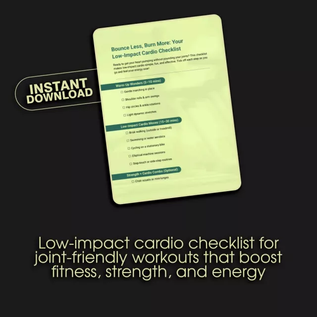 Take the guesswork out of your workouts and make fitness fun again. Download Bounce Less, Burn More: Your Low-Impact Cardio Checklist now and start building energy, confidence, and consistency—one low-impact session at a time.
