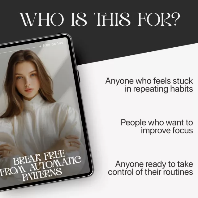 Take control of your daily patterns and start building a life driven by choice, not autopilot. Break Free from Automatic Patterns is ready for instant download. Buy now and take your first step toward lasting change.
