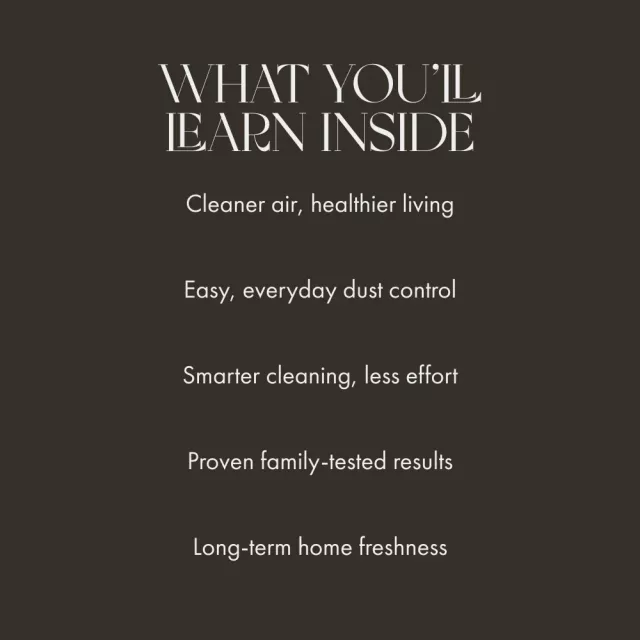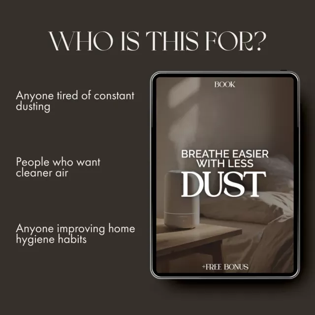 This eBook is perfect for homeowners, renters, allergy sufferers, and anyone tired of seeing dust settle right after cleaning. If you’re ready to make lasting changes and want practical results without frustration, this guide is for you.