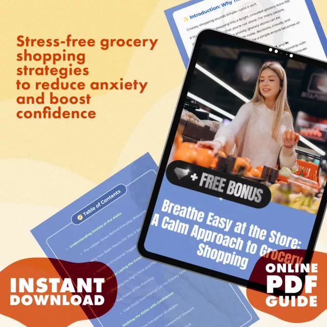 Unlike generic shopping tips, this Anxiety-Friendly Grocery Walk Guide focuses specifically on the emotional triggers and challenges people with anxiety face in grocery stores. It blends practical steps with a supportive approach, making it more than just a checklist—it’s a confidence-building resource. Perfect for individuals seeking gentle guidance, this digital download provides a mix of strategies, real examples, and modern tools to help you reclaim peace of mind while shopping.