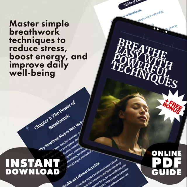 Unlock the hidden potential of your breath with Breathe Easy with Powerful Techniques, a comprehensive digital guide designed to help you master practical breathwork techniques. Whether you’re looking to reduce stress, sharpen your focus, or elevate your overall well-being, this downloadable guide offers step-by-step practices and insights that are simple, effective, and life-changing. Perfect for beginners and seasoned practitioners alike, it blends timeless wisdom with modern AI tools to create a personalized breathing practice you can truly stick with.