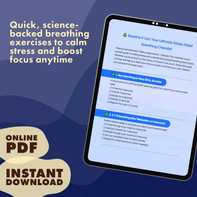 Feeling overwhelmed? Take a deep breath—literally. Breathe It Out: Your Ultimate Stress Relief Breathing Checklist is a simple, practical, and beautifully designed digital download that puts the power of calm right in your pocket. With easy-to-follow stress relief breathing exercises, this guide helps you reset your nervous system, reduce tension, and regain focus—whether you’re at work, commuting, or winding down before bed.
