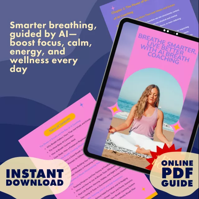 Don’t let your breath be an afterthought—turn it into your greatest tool. Download Breathe Smarter, Live Better with AI Breath Coaching today and start using your AI Breath Coach: Prompts And Scripts to feel calmer, more focused, and more in control of your life. Your journey to smarter breathing starts now.