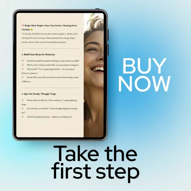 If you are ready to feel lighter, clearer, and more empowered in your daily life, download Bright Mind, Brighter Days: Your Positive Thinking Power Checklist today. Keep it on your phone, tablet, or print it out and make positive thinking a habit that truly works for you.