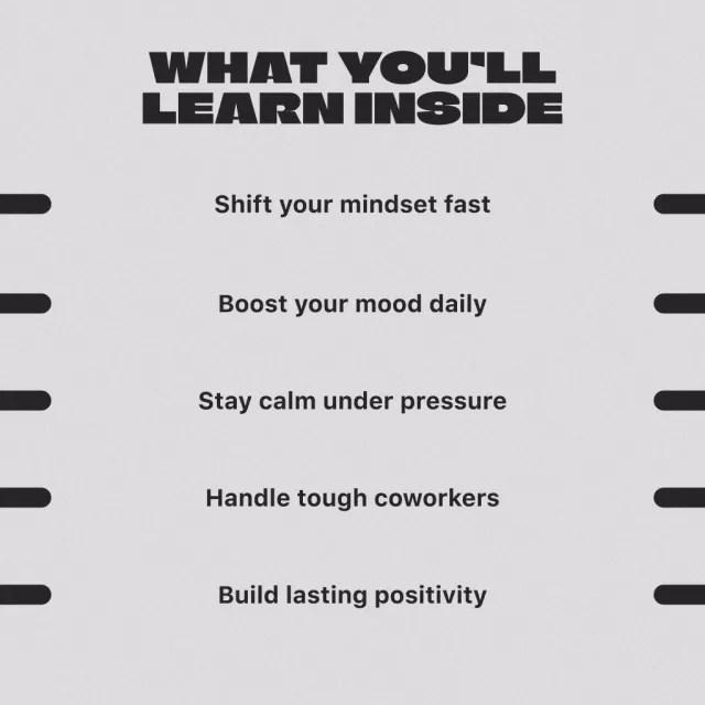 • Overcoming Common Challenges to Positivity — Tackle toxic environments, difficult coworkers, and burnout with grace and grit.