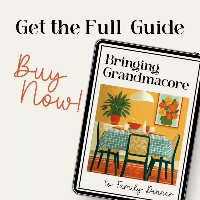 Bringing Grandmacore to Family Dinner | Cozy Grandmacore Guide for Warm Gatherings | how to bring grandmacore aesthetic to family dinner | Vintage-Inspired Dinner Styling eBook