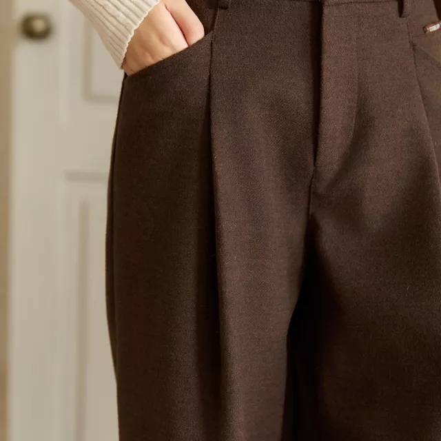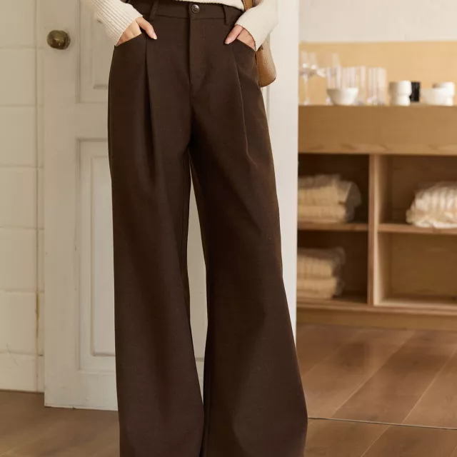 Brown High-Waist Wide-Leg Pants for Women Autumn Winter