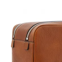 The beauty case features a double top zipper closure, ensuring your belongings are securely stored while providing easy access when you need it. Inside, you’ll find a single compartment that’s spacious enough to hold your essentials, while keeping everything neatly organized. For added convenience, a welt pocket with zipper on the front offers extra storage for smaller items like makeup brushes, lip balms, or any other essentials you want to keep separate. The luxurious grained leather exterior adds a touch of refinement, while the durable design ensures long-lasting use, making this beauty case a reliable investment.