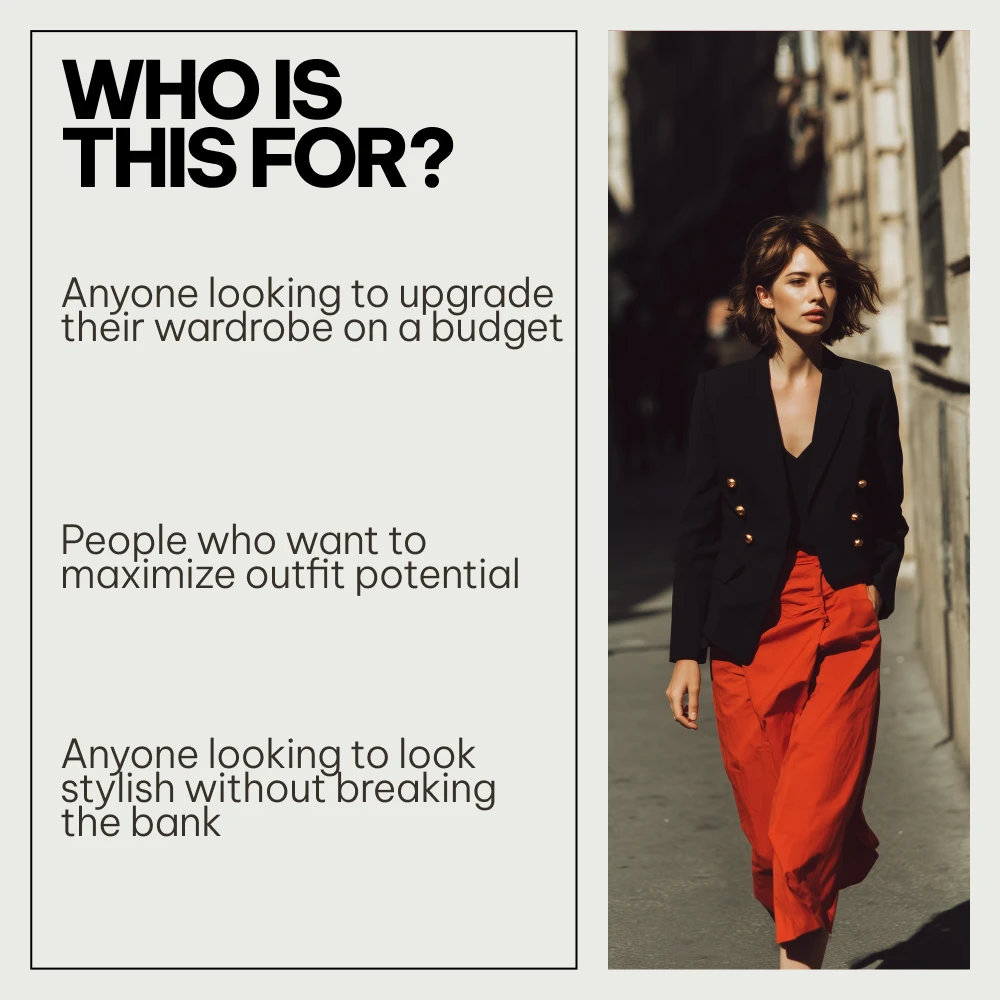 This bundle is for anyone who wants to master style on a tight budget without looking cheap. Whether you’re a college student, a busy professional, or simply someone who loves looking chic without spending a fortune, this guide is packed with value. Unlike other resources that may offer generic or one-dimensional tips, this bundle is curated to provide you with comprehensive, actionable strategies for building a wardrobe that is both stylish and cost-effective.