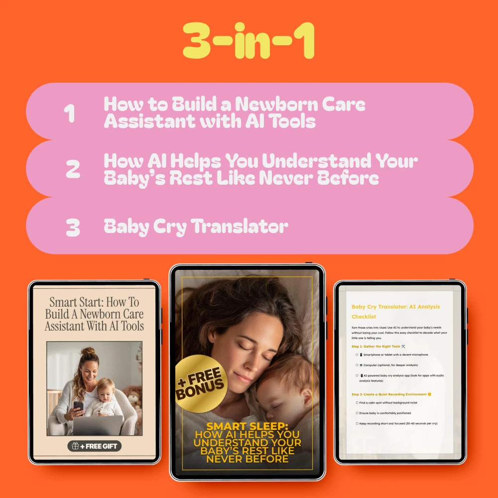 The Build Your Baby Helper with an AI Support System bundle includes three powerful resources that will change how you approach newborn care. From understanding your baby’s sleep patterns to using AI to analyze their cries, this bundle is packed with actionable information to support you in creating a personalized baby care assistant with ease.
