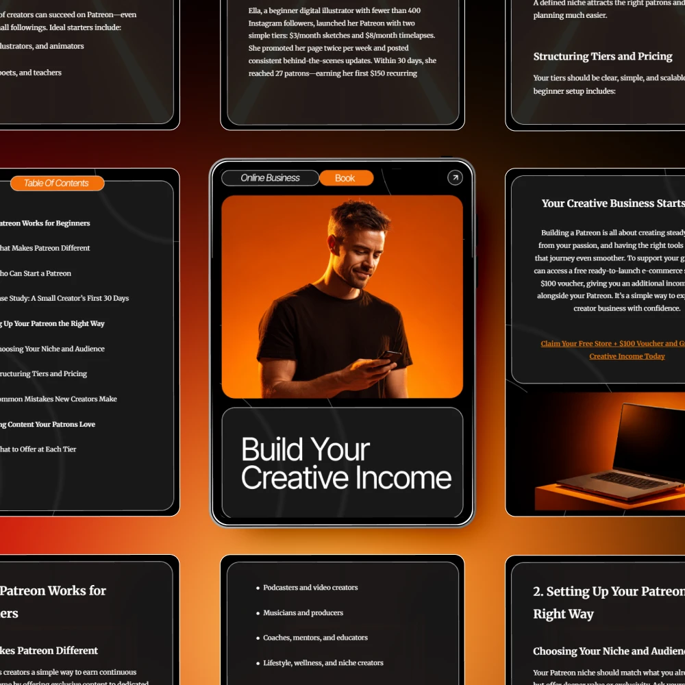 If you’re a new creator dreaming of turning your passion into steady income, Build Your Creative Income is the beginner-friendly roadmap you’ve been searching for. This digital download breaks down patreon online business basics for beginners in clear, simple language and shows you exactly how real creators set up, launch, and grow a supportive membership community. Whether you’re an artist, writer, podcaster, or multi-passionate creative, this eBook guides you through every essential step—from choosing your niche to building tier rewards your audience will love.