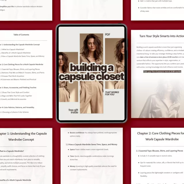 Are you tired of staring at a cluttered closet full of clothes you don’t wear? Do you find yourself overwhelmed by decision fatigue every morning when choosing what to wear for work? It’s time to streamline your wardrobe and simplify your mornings with the Building a Capsule Closet That Works for You eBook. This step-by-step guide will walk you through the process of curating a functional and stylish work capsule wardrobe that saves you time, money, and space—while ensuring you always feel confident and put together.