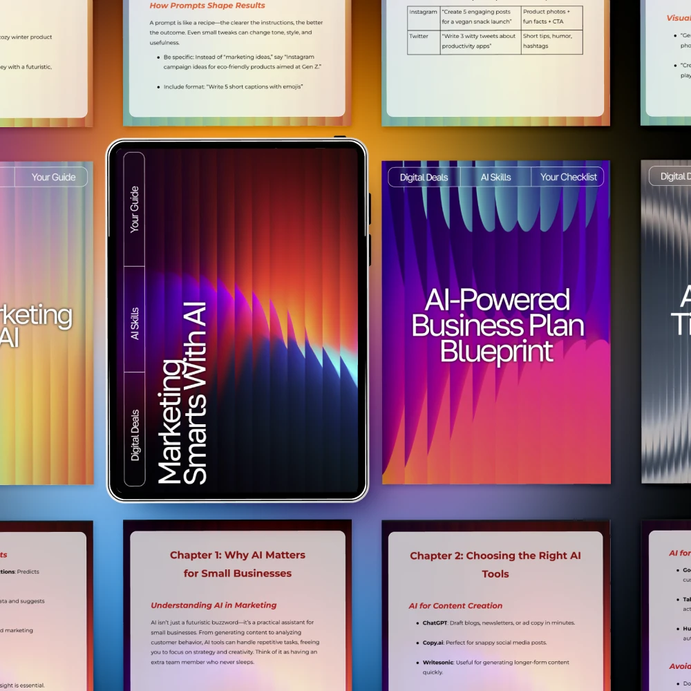 Build smarter, market faster, and grow with confidence using the Business Builder Pack with AI Tools for Daily Marketing. This powerful 5-in-1 digital bundle brings together practical guides, ready-to-use prompts, and actionable checklists designed to help you simplify marketing, sharpen your strategy, and save hours every week. Whether you are launching a new idea or scaling an existing brand, this bundle turns complex AI concepts into clear, everyday actions you can actually use.