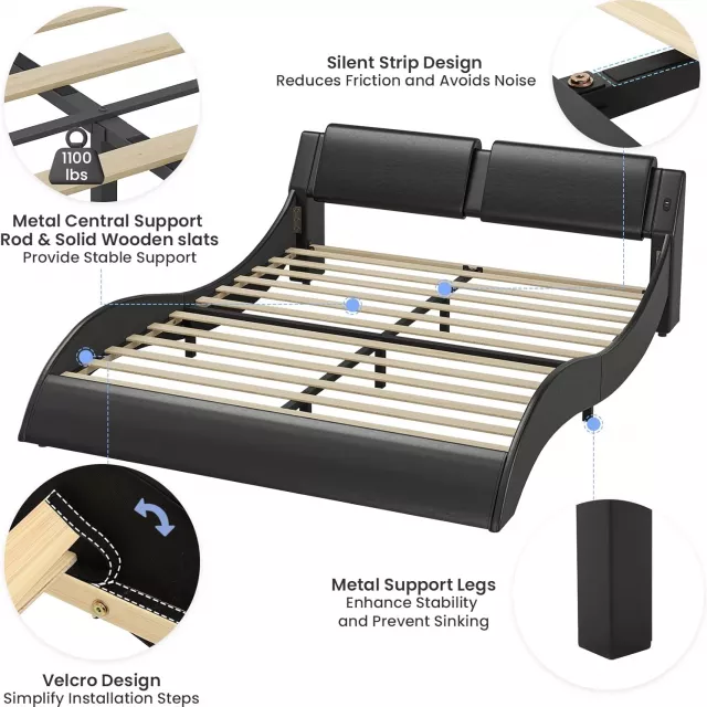 Unlike standard bed frames, this California King model combines smart tech, elegant design, and practical convenience. The floating look, illuminated base, and contemporary wave design deliver a truly unique visual impact. The integrated headboard ports keep your electronics powered and accessible, while the noise-free construction ensures undisturbed rest every night. It’s ideal for those who love tech-forward interiors or want to add a bold statement piece to their bedroom.
