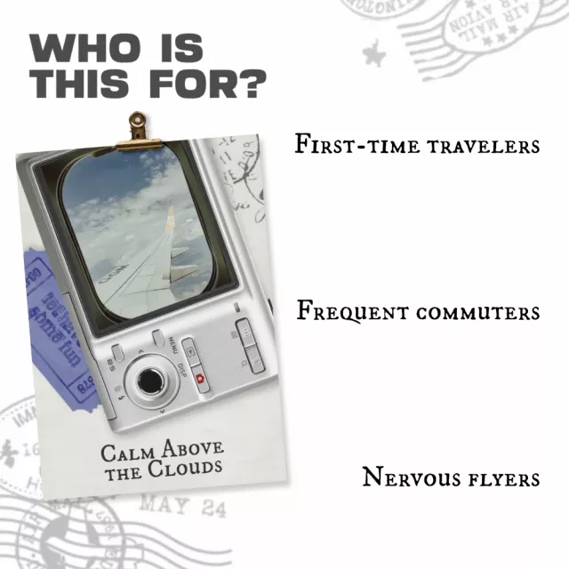 For many travelers, flying isn’t just transportation — it’s a challenge filled with anxiety, racing thoughts, and restless hours before takeoff. Calm Above the Clouds is your step-by-step eBook guide designed to help you understand and finally master how to overcome fear of flying. Created for real people, not pilots or therapists, this guide breaks down why fear happens, what’s actually happening in the air, and how to stay composed from boarding to landing. Whether you’re flying for business, family, or adventure, this guide helps you replace fear with confidence — one flight at a time.
