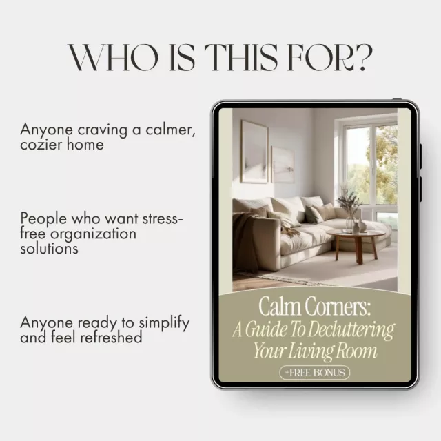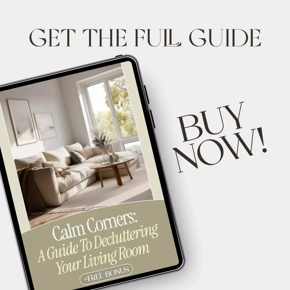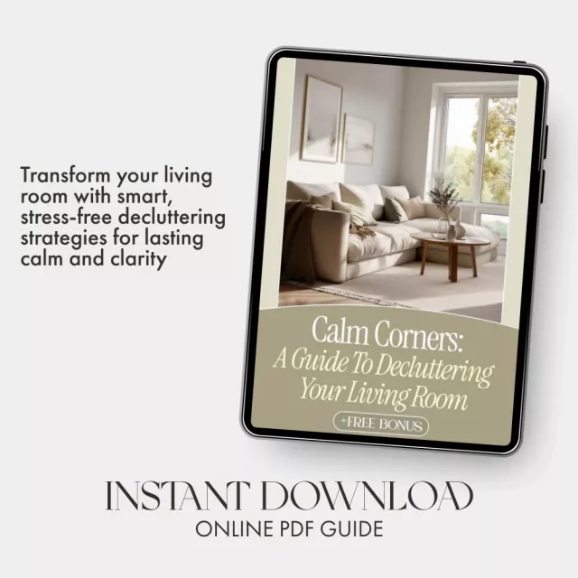 Turn your living room into a peaceful retreat with Calm Corners: A Guide to Decluttering Your Living Room—a beautifully designed digital guide that walks you through the best way to declutter living room spaces with purpose and ease. Whether you’re feeling overwhelmed by clutter, unsure where to start, or simply craving a more relaxing home environment, this guide helps you create balance, order, and lasting calm through mindful organization.