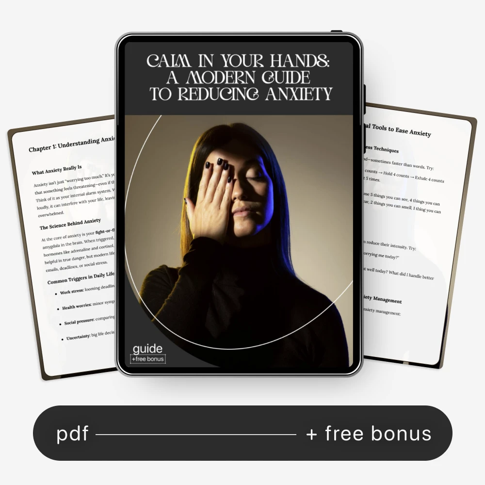 Download Calm in Your Hands: A Modern Guide to Reducing Anxiety today and discover how to reduce anxiety with practical, modern strategies that bring peace back into your daily life. Your calm starts with one simple step — click Download Now and begin your journey to a more centered, confident you.