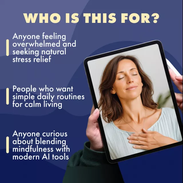 This guide is perfect for anyone who wants natural stress relief, whether you’re a busy professional, a student juggling deadlines, or someone looking for gentle, holistic alternatives to medication. It’s different from other digital resources because it not only gives you trusted natural methods but also integrates AI prompts to help you create personalized meditation scripts, playlists, and meal plans—making stress relief easier and more effective.