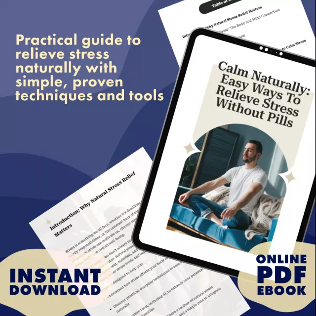 Are you tired of feeling stressed, overwhelmed, and drained? Calm Naturally: Easy Ways to Relieve Stress Without Pills is a beautifully designed digital eBook created to help you take back control of your peace of mind using natural, safe, and effective techniques. With easy-to-follow guidance, practical exercises, and AI-powered prompts, this stress relief eBook shows you how to relax, recharge, and restore balance—without relying on medication.