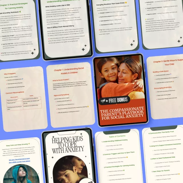 • The Compassionate Parent’s Playbook for Social Anxiety: A playbook focused on supporting your child through social interactions, providing tools to alleviate fears and promote confidence in social settings.