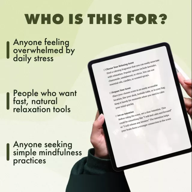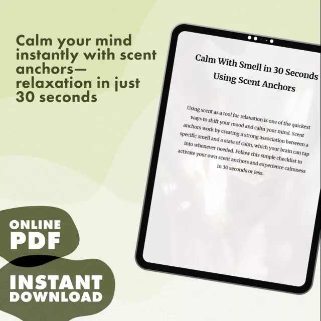 Stress doesn’t have to control your day. With Scent Anchors: Calm With Smell in 30 Seconds, you’ll have a simple, science-backed method to create calm on demand. Download instantly, follow the checklist, and start building your personal scent anchor today. A calmer, more focused you is just a breath away.