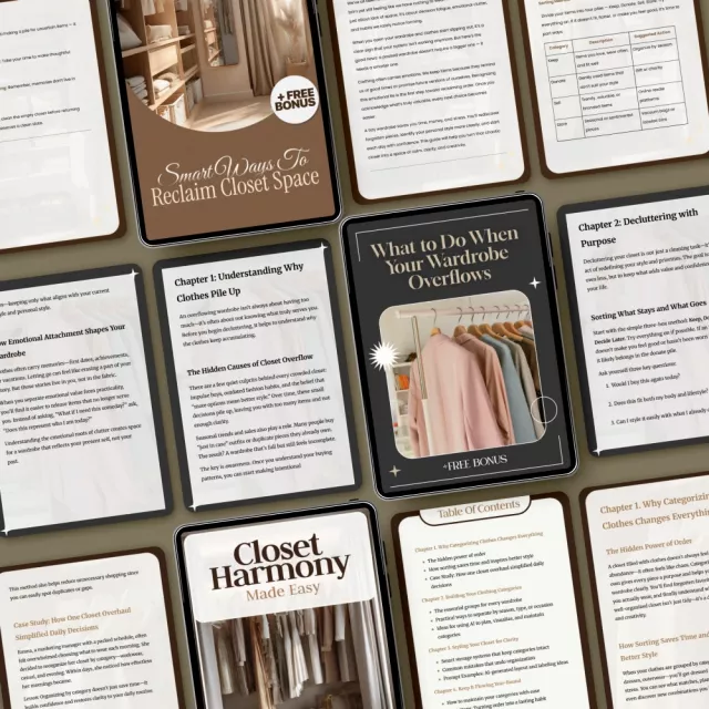 Included in this bundle are comprehensive resources that cover everything from decluttering and organizing to maintaining a streamlined wardrobe. The practical tips and actionable steps are designed to help you make space for what truly matters, without feeling overwhelmed or restricted.