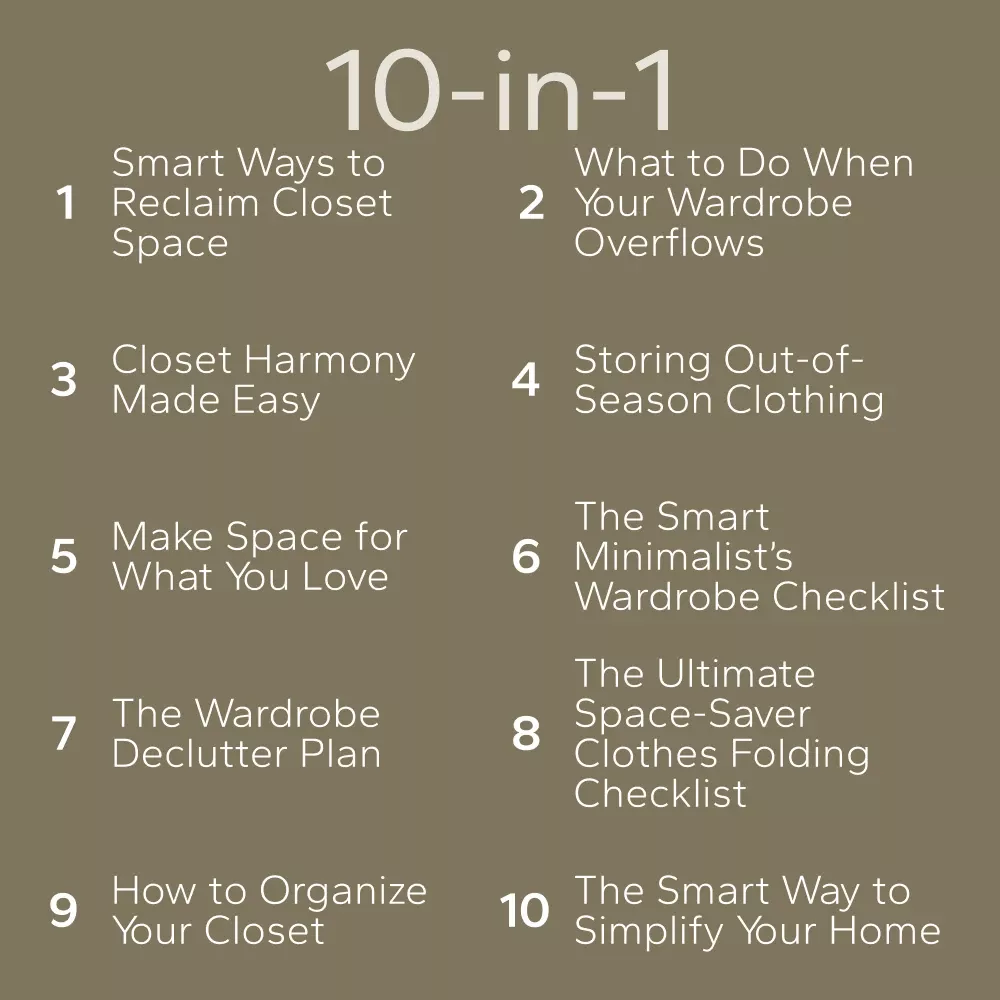 If you're struggling with cluttered closets, get on board with the minimalist wardrobe trend using this 10-in-1 bundle - totally worth it!
