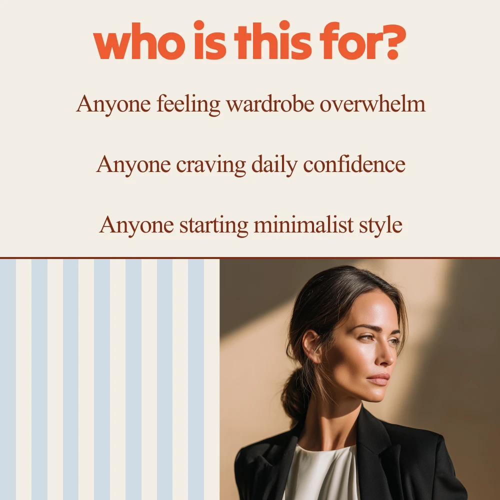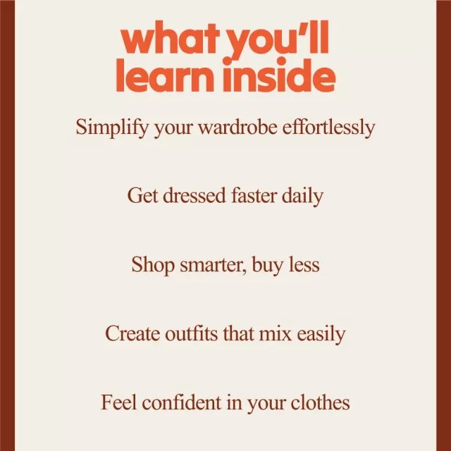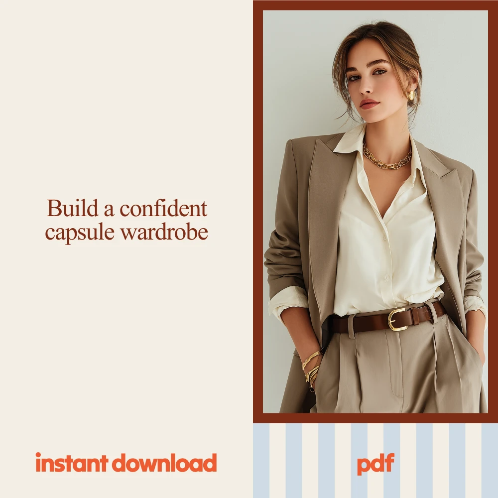 This 3-in-1 bundle is perfect for anyone overwhelmed by their current wardrobe or seeking simplicity without sacrificing personality or style. With its actionable checklists, practical guidance, beginner-friendly eBook, and mindset support all in one place, it doesn't just tell you what to wear but actually teaches you how to build a capsule wardrobe with confidence and long-term success in mind.