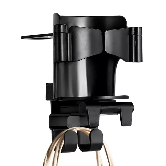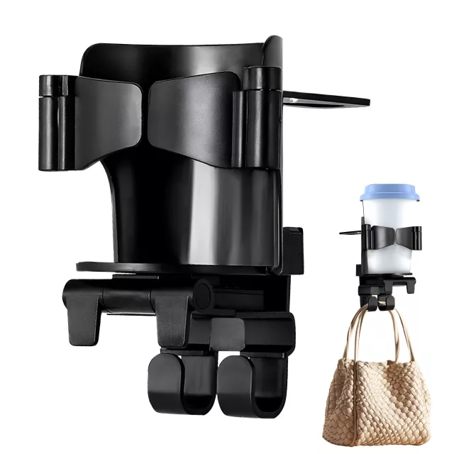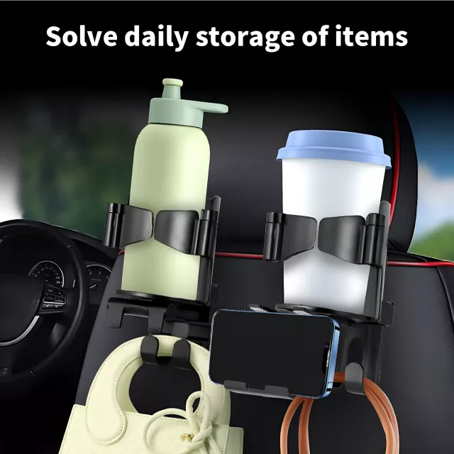 Crafted from durable ABS material, this headrest-mounted accessory offers strong grip, stability, and anti-slip performance—even on bumpy roads. The foldable phone holder provides a secure four-corner foundation, allowing one-hand operation and adjustable viewing angles for hassle-free entertainment or navigation. The integrated hooks are designed to hold bags, jackets, or essentials, while the compact cup holder keeps your drink steady within easy reach.