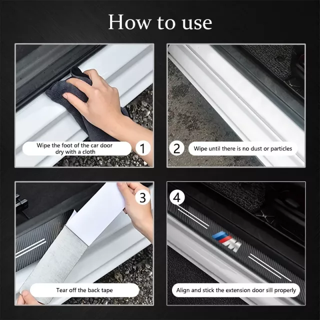 Give your vehicle a stylish upgrade while protecting it from everyday wear and tear. These carbon fiber car door sill protector stickers are designed to shield your door entry area from scratches, scuffs, and dirt – all while adding a sleek, sporty touch. With their durable finish and fashionable design, they instantly make your car look more refined and unique.
