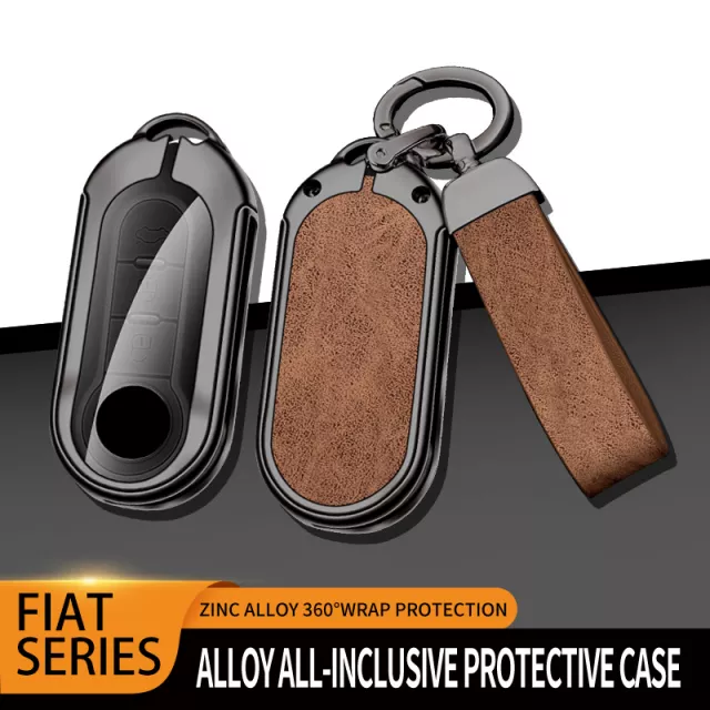 Carbon Fiber Car Key Case Cover Shell with Leather Metal Design