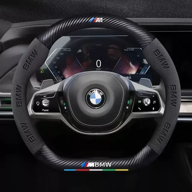 Elevate the style, comfort, and performance of your vehicle with this top-tier Carbon Fiber Suede Leather Steering Wheel Cover. Designed to fit the latest 2023-2024 BMW models, this sleek accessory is perfect for owners who demand luxury and functionality in every detail of their car. Crafted with precision, it’s the ideal upgrade for those who want to transform their driving experience and add a touch of sophistication to their interior.