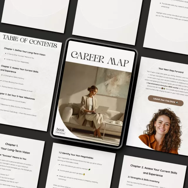 Feeling stuck, overwhelmed, or unsure about your next career move? Career Map is a practical, step-by-step ebook designed to help you gain clarity, direction, and confidence. Whether you’re climbing the corporate ladder, changing industries, or just starting out, this guide shows you how to make a 5-year career plan that actually works in real life. No fluff, no generic advice — just a structured system you can start using immediately.