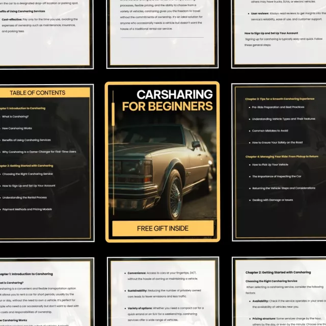 Unlike generic articles or outdated blog posts, Carsharing for Beginners combines real-world guidance with modern insights, including how AI is shaping carsharing services today. It’s structured, actionable, and written specifically with beginners in mind—so you’re never left guessing.