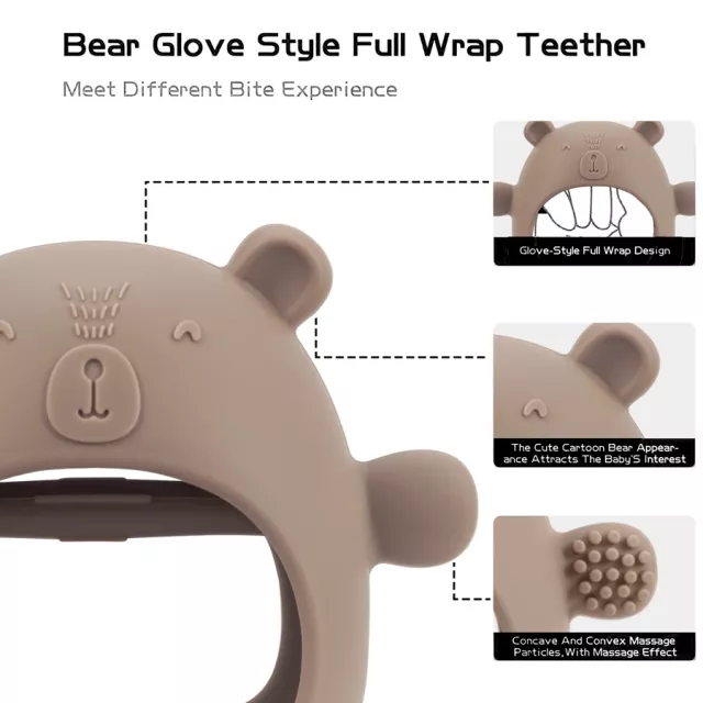 • Adorable Bear Design: The charming bear shape is not only cute but also easy for little hands to grasp, making it an ideal teething companion.