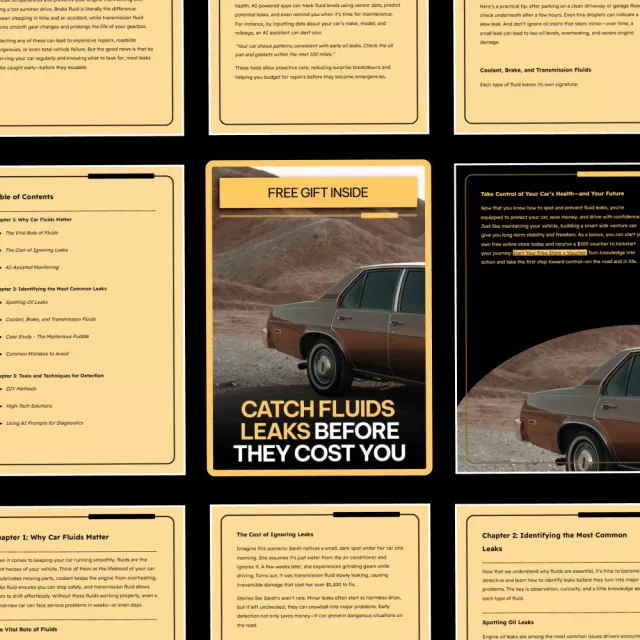 • Chapter 4: Next Steps and Prevention – DIY vs professional repairs, maintenance routines to prevent leaks, and leveraging AI for long-term car health.