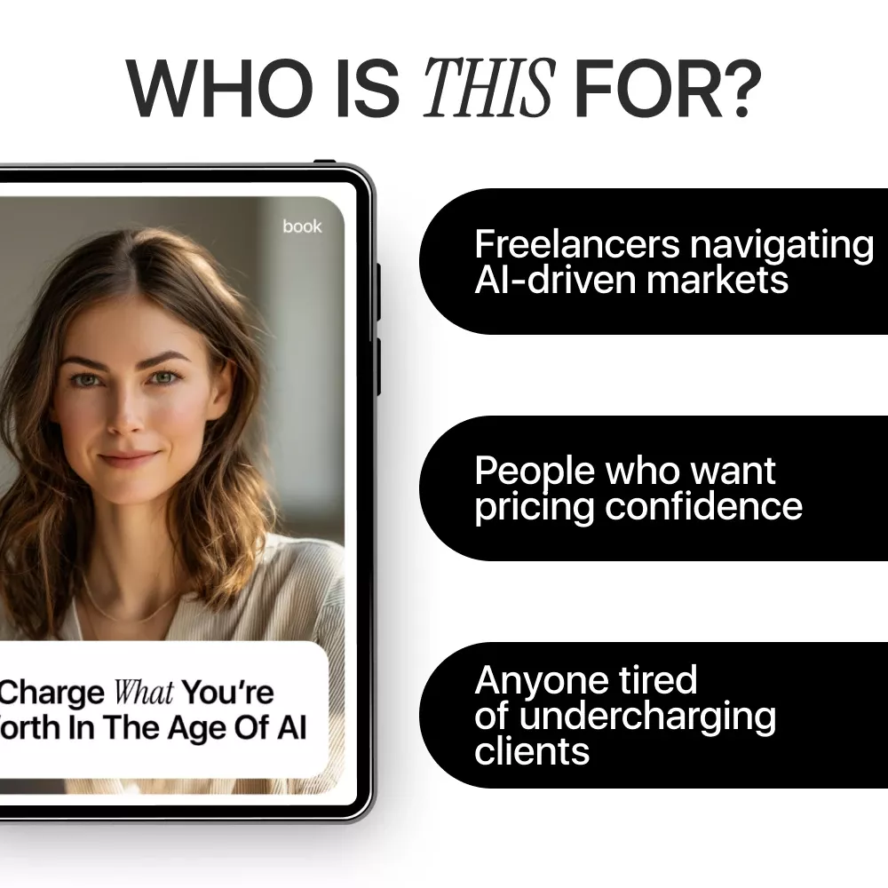 This eBook is made for freelancers, consultants, and independent creatives who want ai pricing help for freelancers that actually works in the real world. It’s ideal if you feel underpaid, struggle to explain your rates, or worry that AI tools are making pricing more competitive and confusing.
