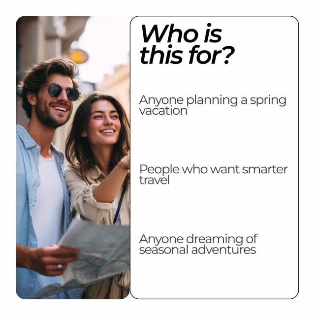 This bundle is perfect for spring travelers, digital nomads, seasonal vacation planners, and anyone wondering where to go in spring for the best weather, blooms, and experiences. It works for both first-time international travelers and experienced explorers who want smarter planning tools.