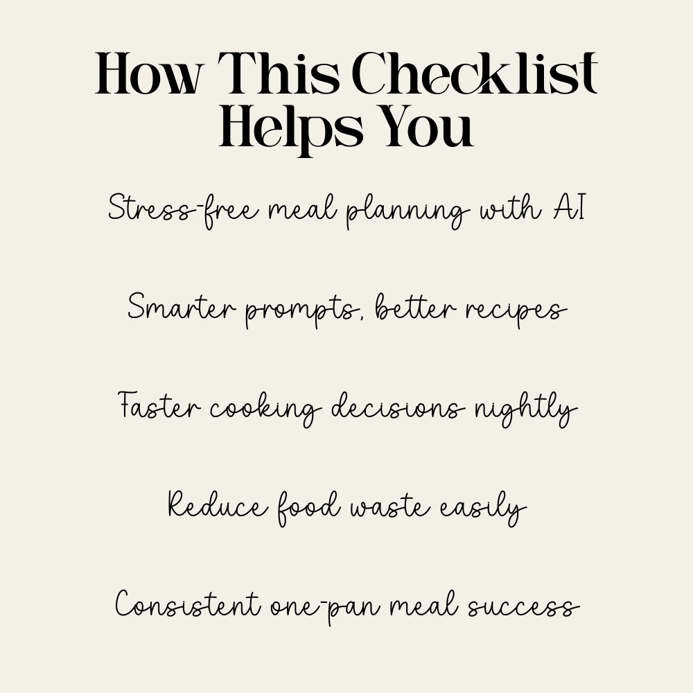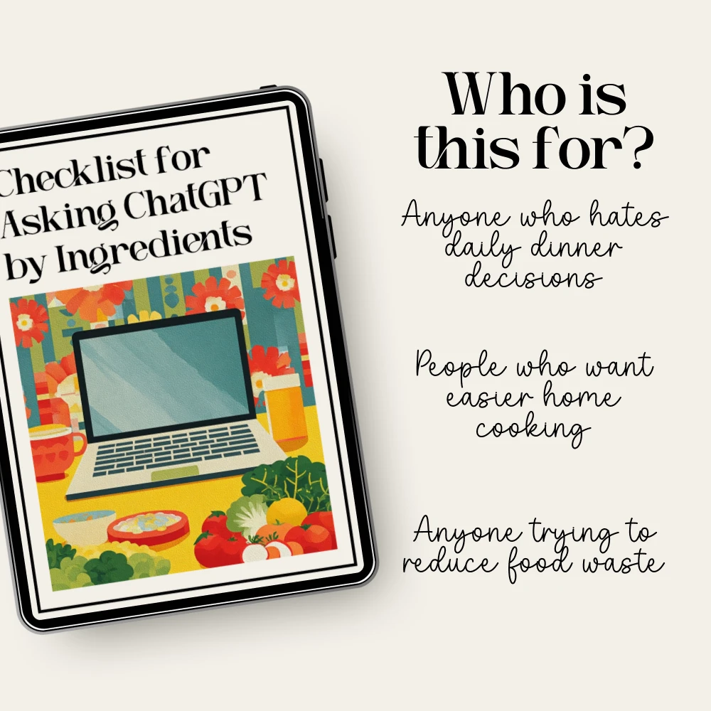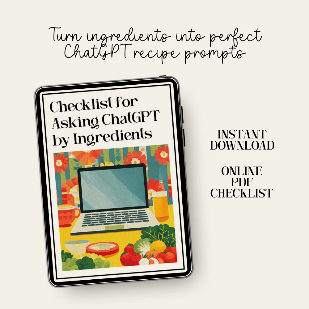 If you’re ready to stop guessing and start cooking with confidence, this Checklist for Asking ChatGPT by Ingredients is your next kitchen essential. Download it today and take control of your dinners with clear prompts, better answers, and one-pan meals that actually work with what’s in your fridge.