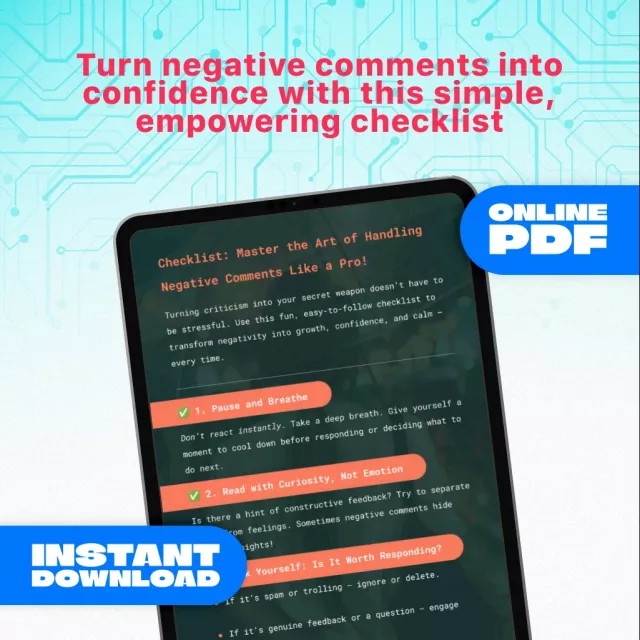 We all face criticism at some point — but what if you could turn it into a secret weapon? The Checklist: Master the Art of Handling Negative Comments Like a Pro is your go-to digital download for transforming stressful moments into opportunities for growth, calm, and confidence. Whether you’re a business owner, creator, or simply navigating online conversations, this easy-to-follow guide helps you handle negativity with grace while protecting your peace of mind. If you’ve ever wondered how to handle negative comments without stress, this checklist is for you.