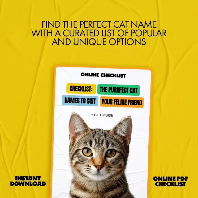 Ready to discover the most popular cat names or find a unique, creative twist on your cat’s name? Don’t wait – download this checklist today and give your feline friend the name they deserve!