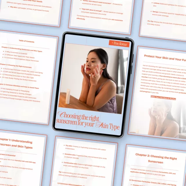 Finding sunscreen that truly works for your skin can feel overwhelming, especially with endless formulas, SPF numbers, and conflicting advice. Choosing the Right Sunscreen for Your Skin Type is a clear, easy-to-follow digital guide designed to help you finally understand what sunscreen suits my skin type without confusion or guesswork. Whether you struggle with breakouts, sensitivity, dryness, or shine, this guide walks you step by step through smarter sunscreen choices using real-world examples and practical insights.