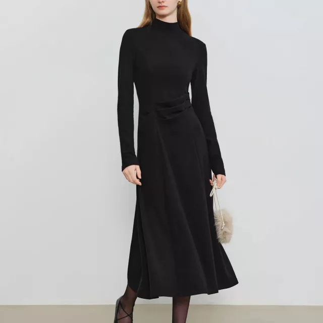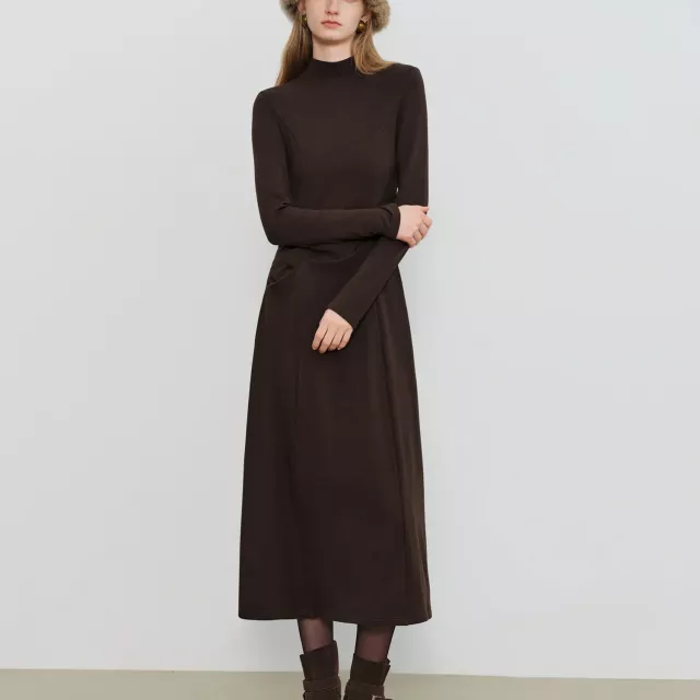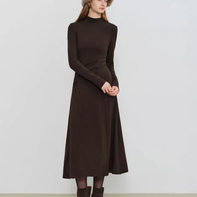 What sets this dress apart is its perfect balance of structure and softness. The empire waistline creates a long, lean look and naturally draws attention to your upper body, while the slightly stretchy fabric makes it easy to move without losing its shape. The fabric blend of viscose, cotton, acrylic, and spandex provides warmth, breathability, and a soft touch, so you stay comfortable without feeling bulky.