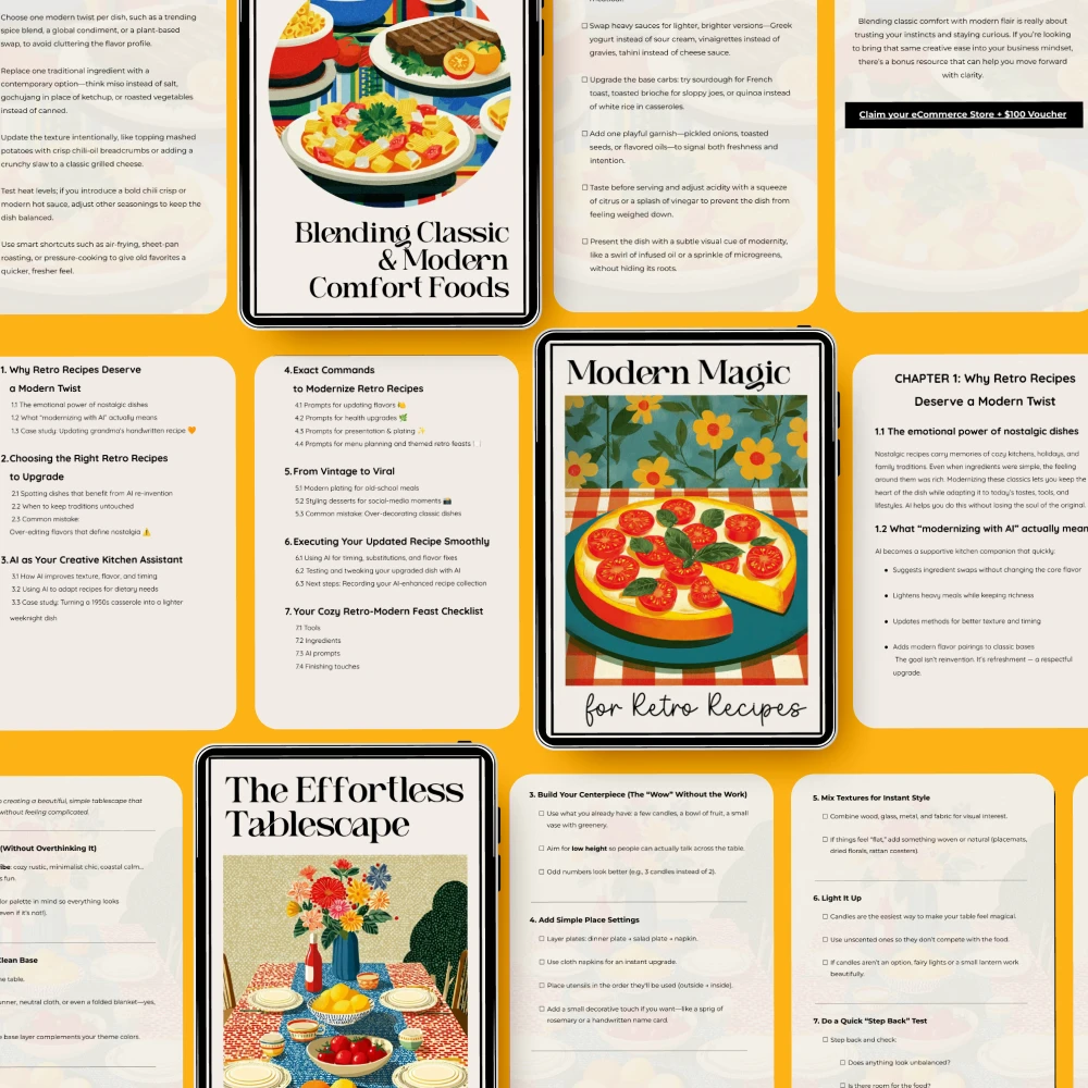 I genuinely enjoyed working through the Classic Comfort Bundle with Modern Twists. The blending checklist made it much easier to rethink some of my usual comfort dishes without completely reinventing them. I especially liked the retro recipe upgrade ideas—they felt practical rather than gimmicky. My only small complaint is that a few sections felt a bit wordy, and I had to reread certain steps to fully grasp them. Still, it’s a thoughtful, inspiring resource overall.